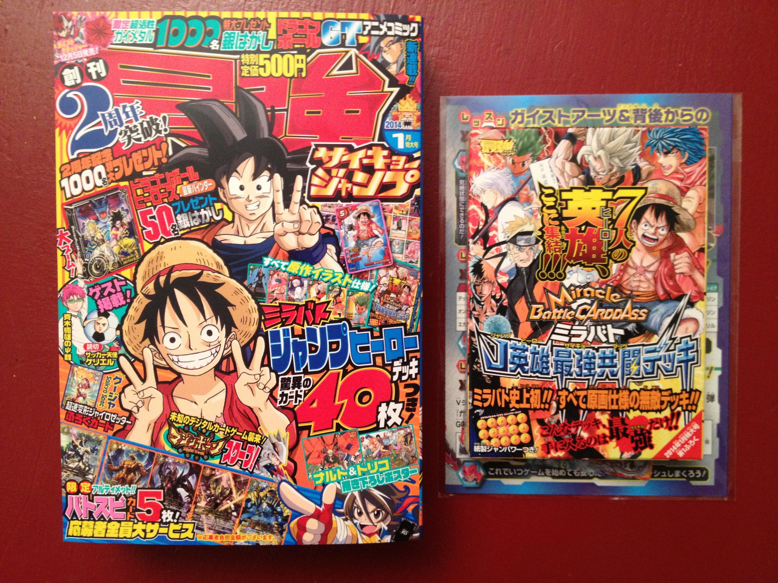 Pour information, un autre Starter Deck est récemment sorti le mois dernier, il était offert avec le Saikyo Jump de dédembre 2013. Numéroté PJS-01 (Promo Jump Saikyo ?), il comprend 40 cartes regs (20 nouveaux visuels en 2 exemplaires), toutes numérotés comme des cartes promos :
