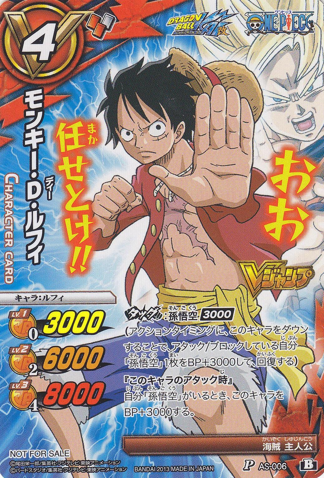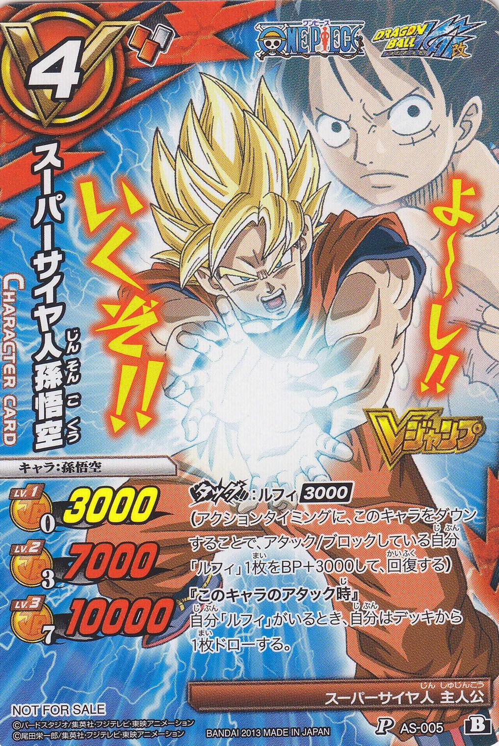 - Les promos P AS-005 (Dragon Ball) et P AS-006 (One Piece) étaient offertes avec le V-Jump de décembre 2013 (n°11-2013) :