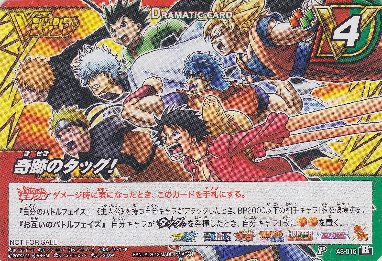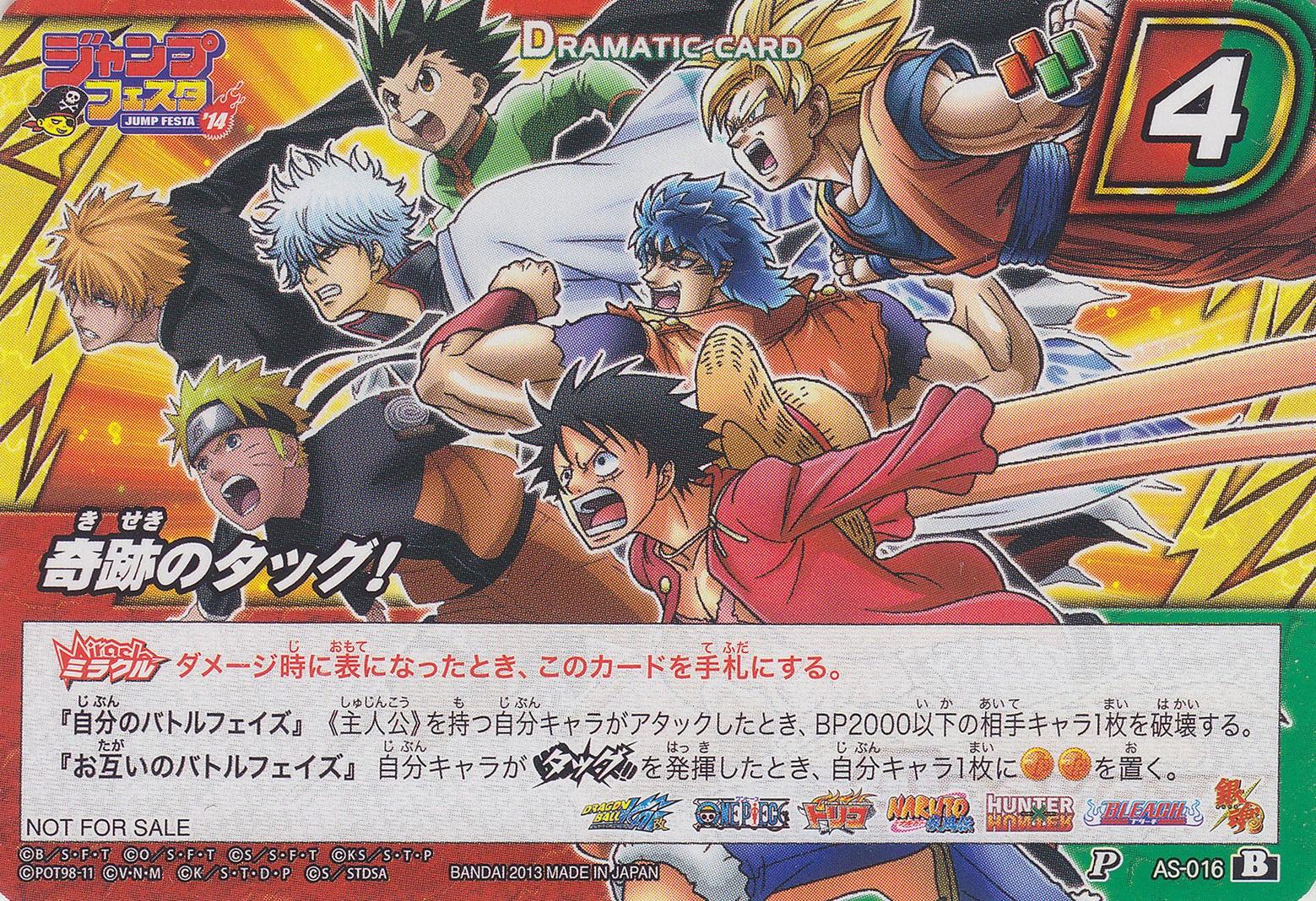 - La promo P AS-016 (Tag) est sortie en 2 versions également, une version offerte au Jump Festa 2014 (logo JF2014), et une version offerte avec le V-Jump n°01-2014 :